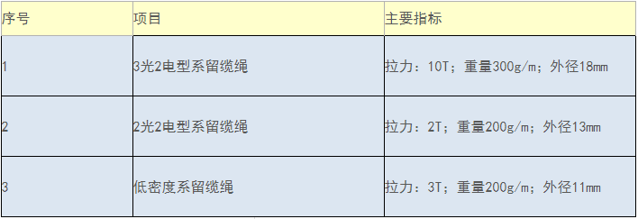 產(chǎn)品特點(diǎn):系留光電纜具有抗拉強(qiáng)度大、重量輕、抗雷擊、耐靜態(tài)拉力等特點(diǎn),其中*大抗拉強(qiáng)度超過30噸,組件抗拉強(qiáng)度超過25噸,能承受200kA的暴雷襲擊,單根*大長度可達(dá)4000m以上。